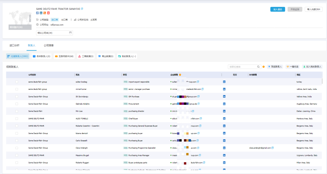 不用费时费力多渠道查找,J9国际站 J9 外贸通集合关键决策人的职务、邮箱、领英、Facebook等信息,可直接链接领英等世界主流社交媒体平台,帮助企业快速和目标对象建立联系,助力客户开发。