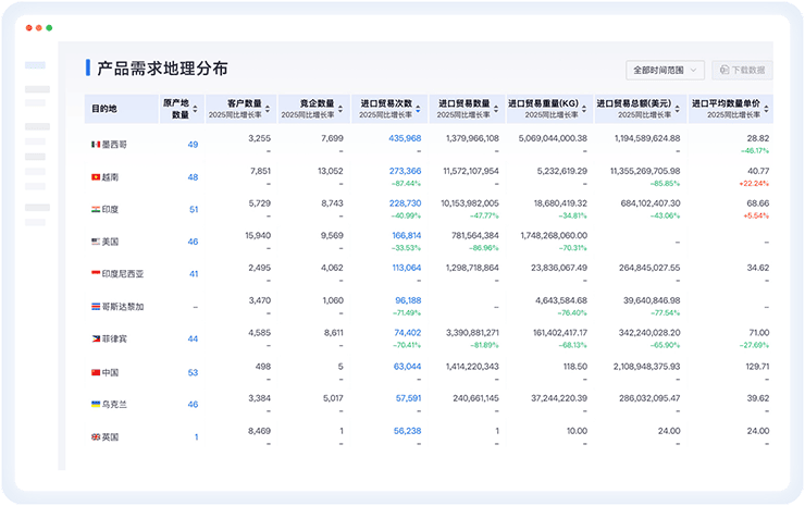 贸易数据:用于市场调研、客户开发、价格锚定等;