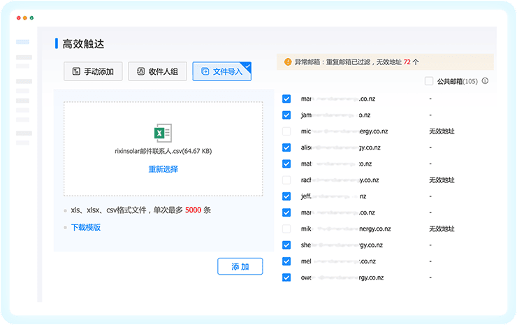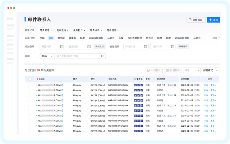 J9国际站 J9 外贸通内置自动发送系统,根据需求智能分析投递线路,抵达率达90%以上;联系人管理、重要度匹配、无效邮箱过滤等功能,触达、跟进更高效