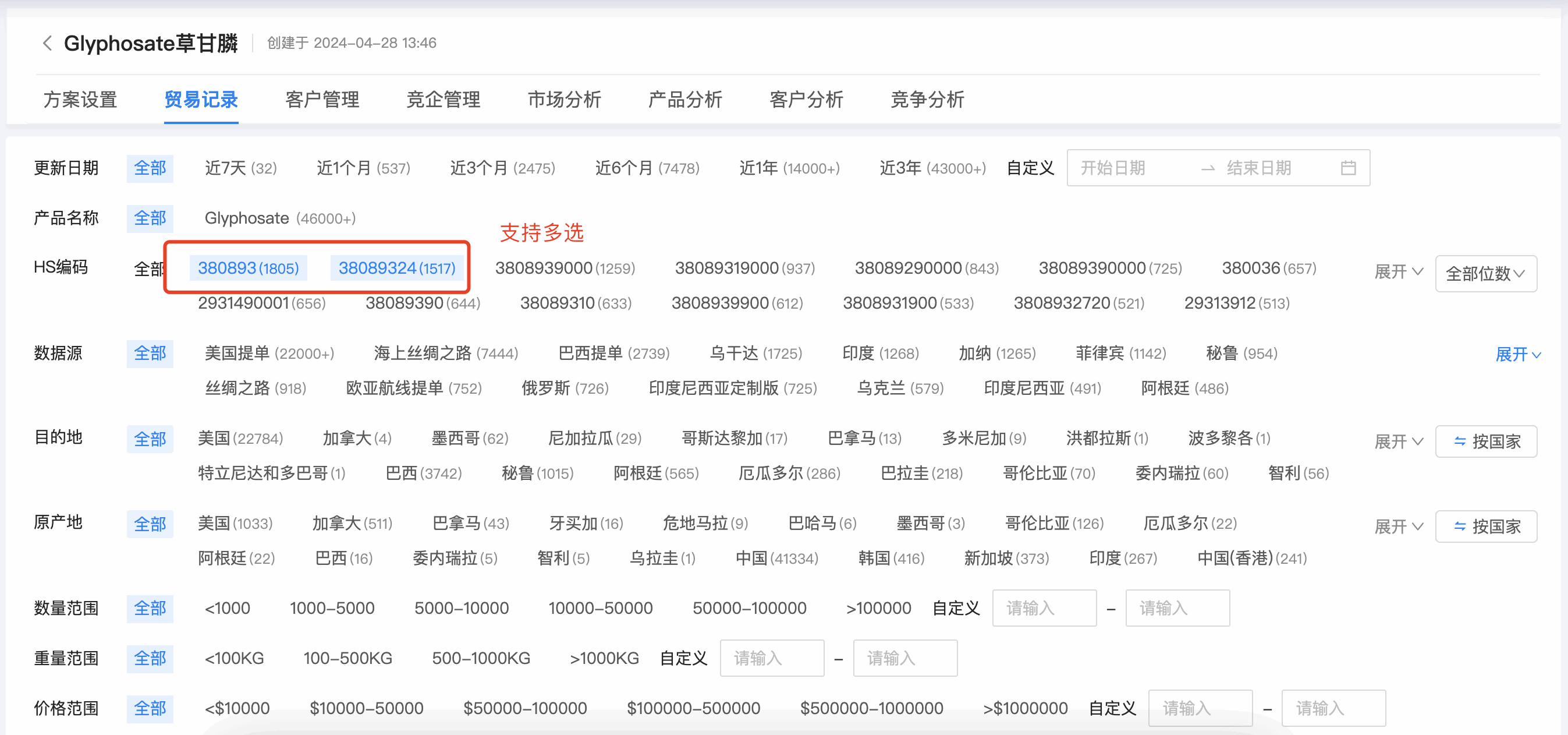 1. J9国际站 J9 数据通贸易记录的编码筛选,支持按 4 位、 6 位编码位数统计,同时可支持多选。